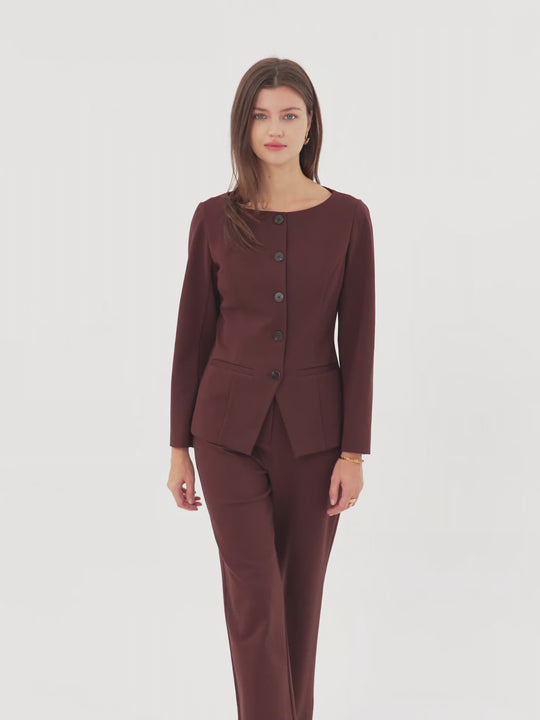 This ponte fabric is a type of knit material made from a blend of viscose, nylon, and spandex. It has a double-knit construction that gives it a stable, firm texture and a smooth surface. It has excellent drape and mostly used for clothing such as dresses, skirts, and pants.