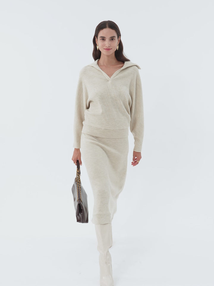 This elevated knit blends plush comfort with a refined ribbed structure. It is soft enough for cozy sweaters, yet structured enough to hold shape in outer layers. The brushed surface brings a subtle, wool-like handfeel.