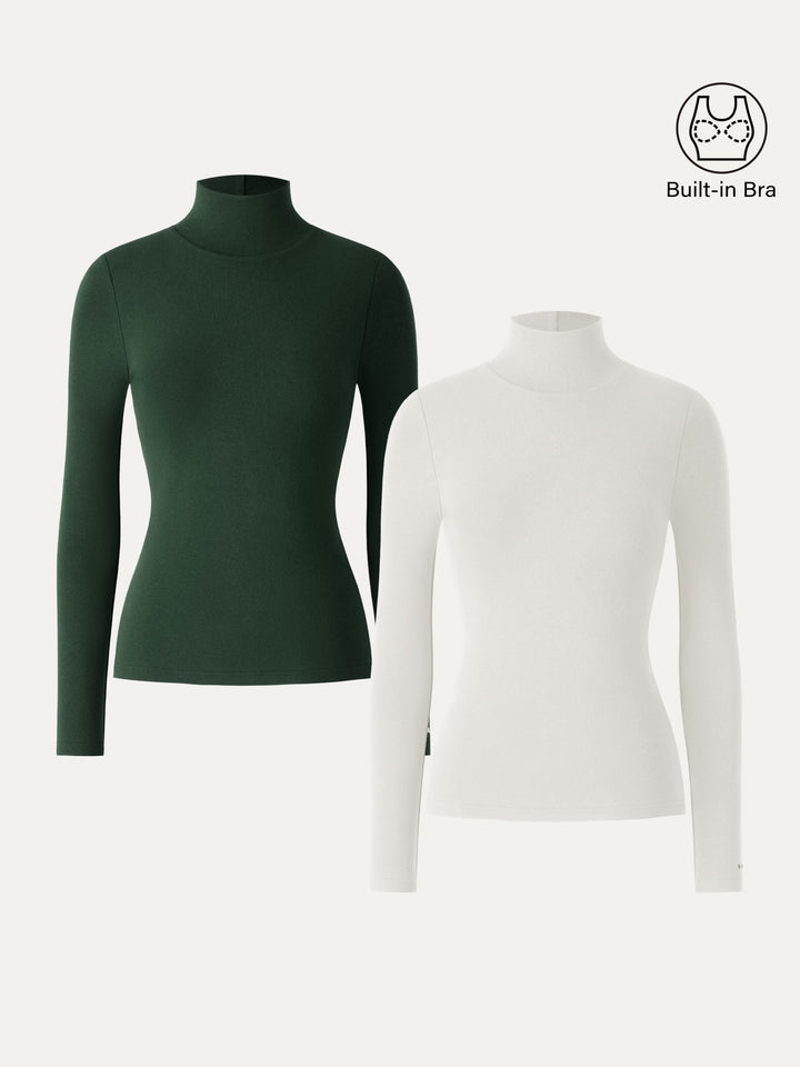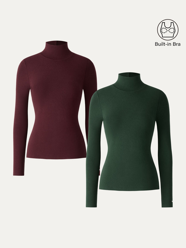 Who doesn’t need a good basic turtleneck that keeps you warm without the bulk? You will love this slim-fit style with a soft brushed interior. Built-in bra pads offer light support, so you can wear it as a cozy base layer.