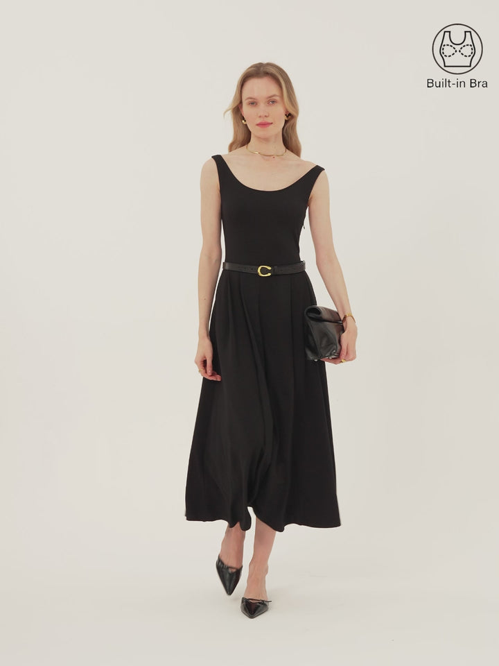 You’ll love this midi dress with a scoop neck and pleated detail for elegant simplicity. Falling to a lower-calf length with inseam pockets and removable bra pads, it’s a must-have for the holidays and beyond.