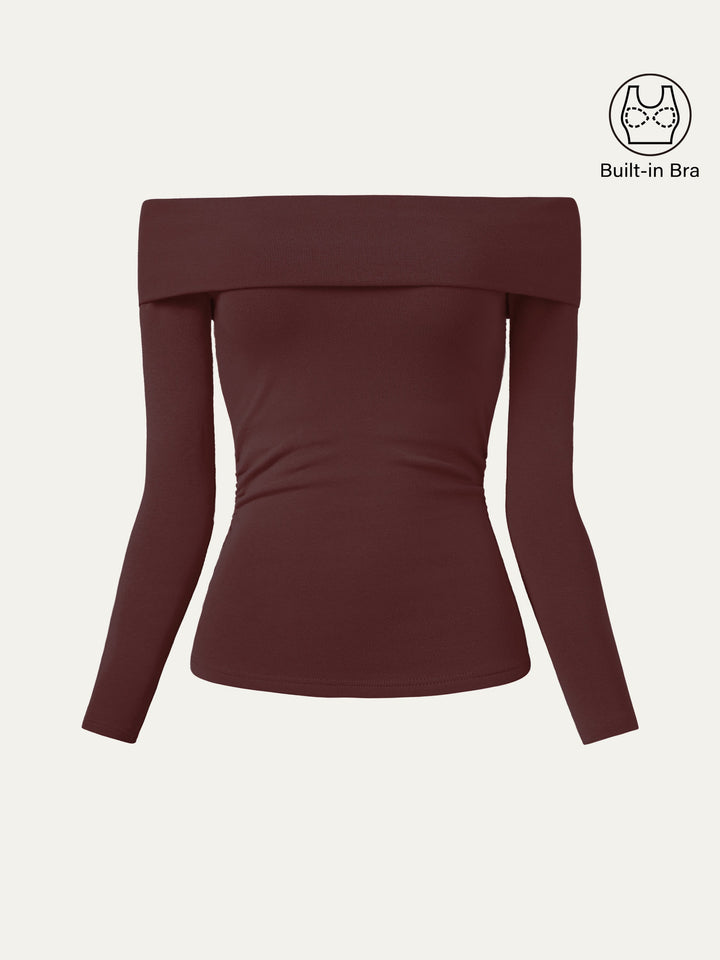 A perfect addition to any cool weather wardrobe, this Long-Sleeve Off-The-Shoulder Brami Top is made from brushed, mid-thermal fabric to keep you warm and comfortable. The off-the-shoulder neckline elegantly frames the face and neck for a touch of femininity, while ruched side seams enhance and define your waistline. Dress it up with a flowing midi skirt, or down with your favourite jeans.