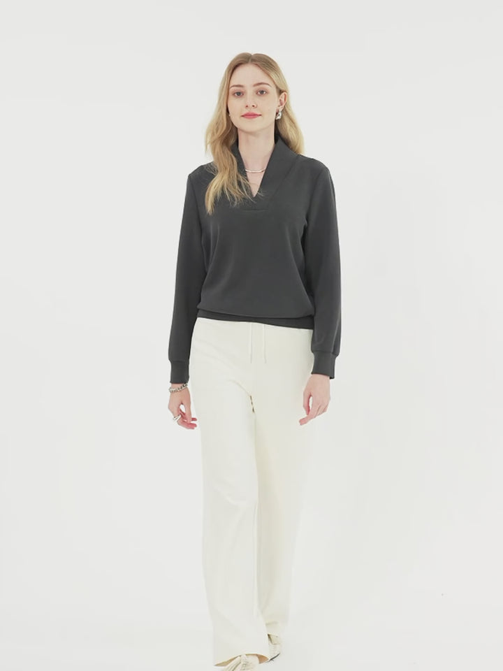 You will love how this V-neck pullover top makes smart casual feel effortless. Finished with a banded hem and cuffs, it’s a super chic essential. Complete the look with our matching pants for an easy, polished set.