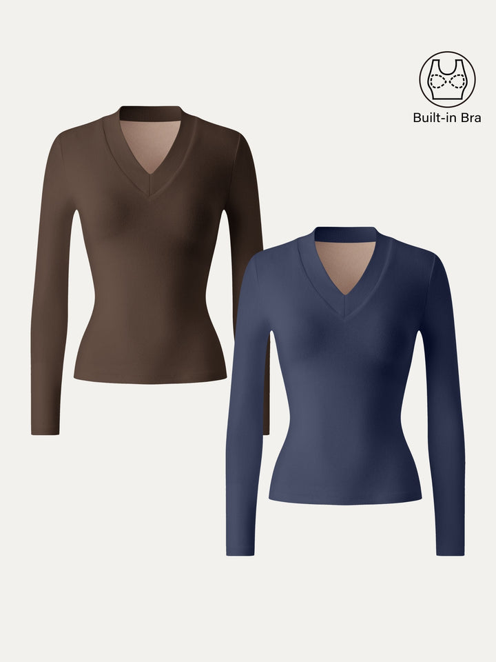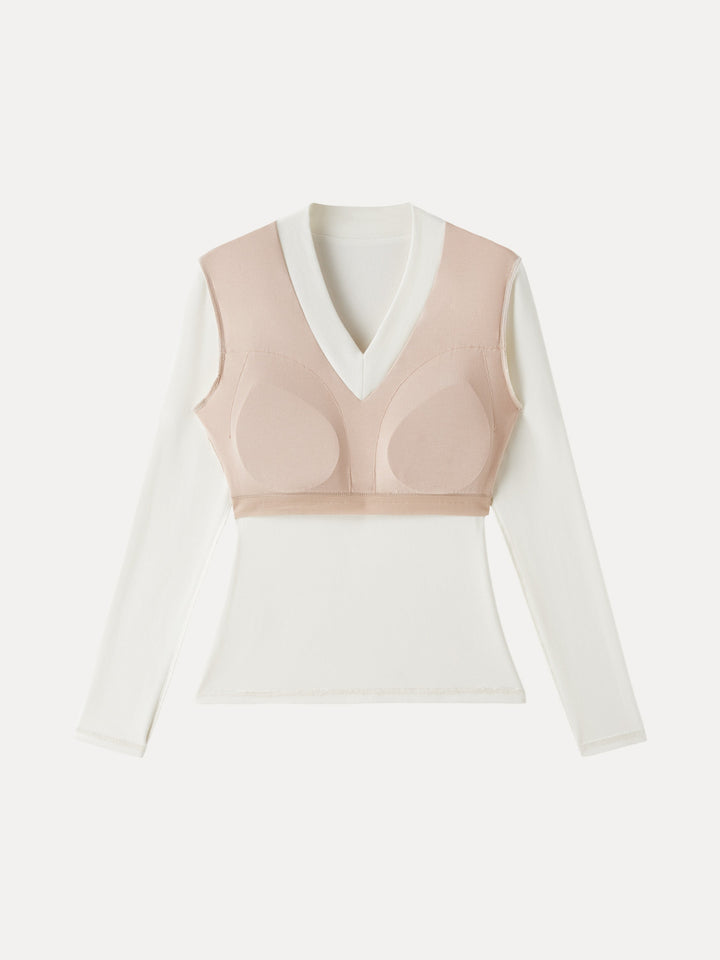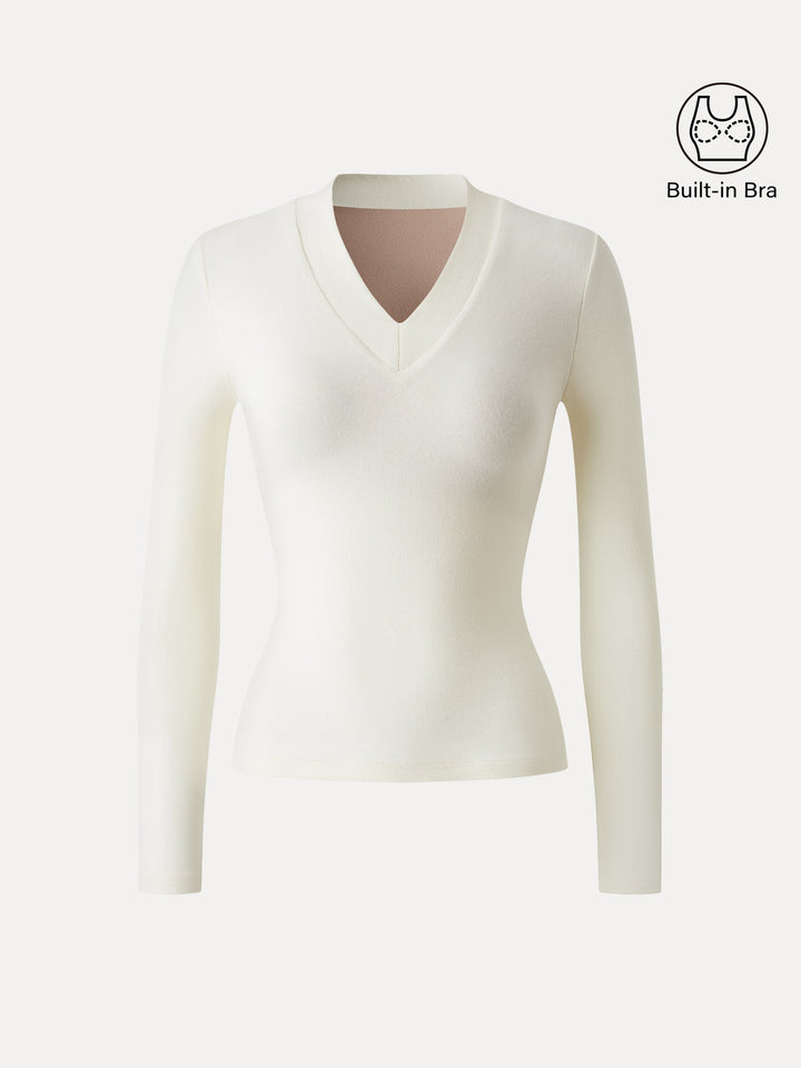 You will love this essential with its polished V-neck and slimming waist. The exaggerated rib binding adds bold texture, while removable bra pads keep it easy and supportive for everyday wear.