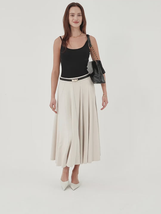 A flowy lyocell skirt with a godet hem that creates beautiful, airy volume as you move. The mid-rise pull-on waistband keeps it effortless, and pockets add everyday function.