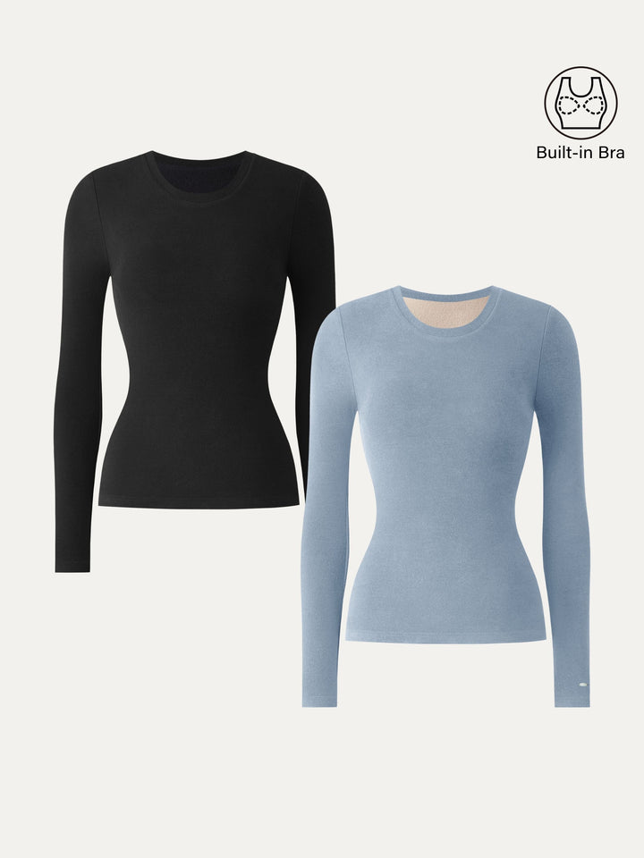 You will love this top made from double-brushed plush rib for extraly cozy warmth. Finished with a crewneck and natural shell logo detail, it’s your go-to essential with built-in support from the removable bra pads.