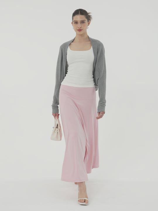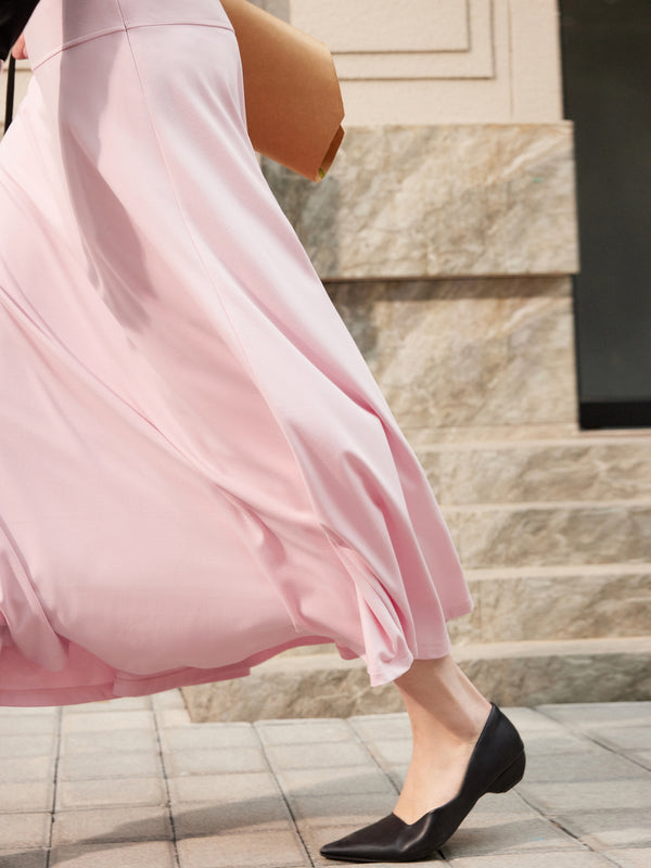 A flowy midi skirt with a full circle hem that drapes beautifully and moves with you. The stretchy pull-on waistband keeps it easy and comfortable, and inseam pockets add function without breaking the clean line.