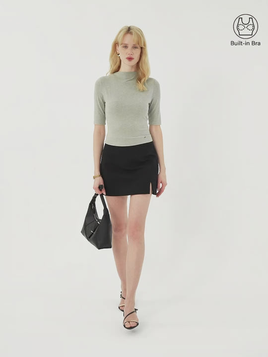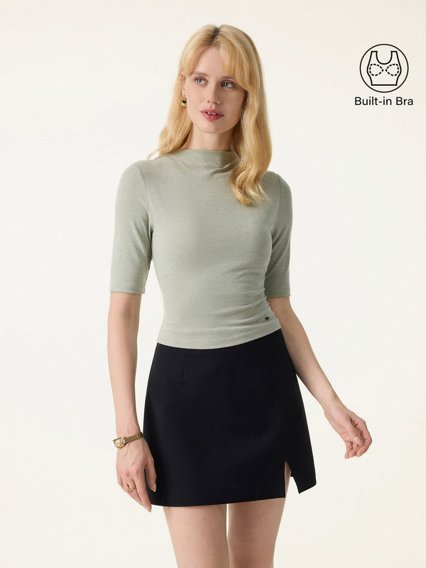 A modal-ultrasoft top with a low mockneck and elbow sleeves that makes a simple outfit look instantly more polished. The cropped slim fit pairs cleanly with high-rise bottoms, and it includes removable bra pads for comfort and support.