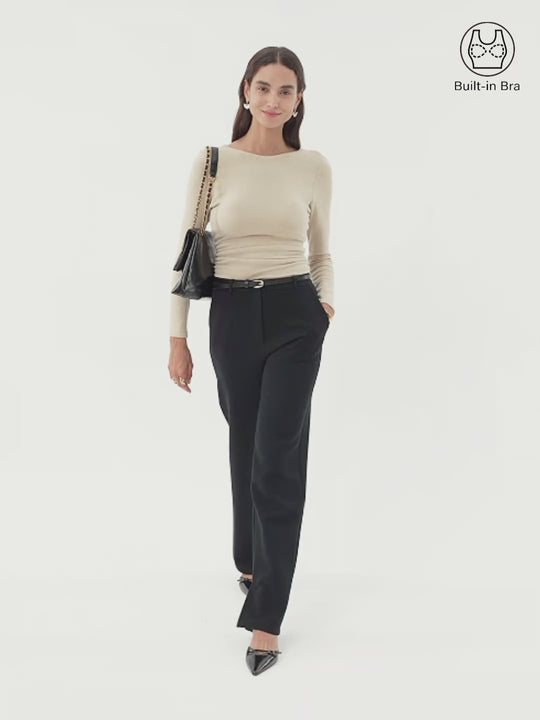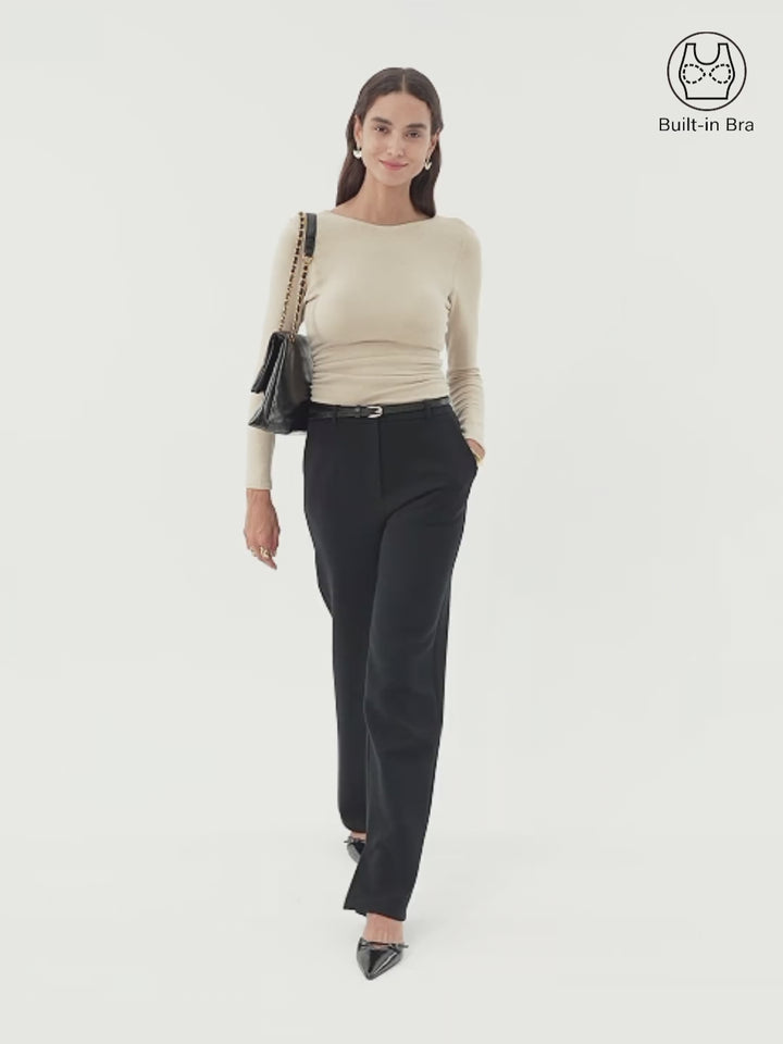 You’ll love the low-back design that adds a chic, subtly sexy touch. Made with softly brushed fabric and removable bra pads for comfort and support, it contours your shape with side ruching for a smooth, confident fit.
