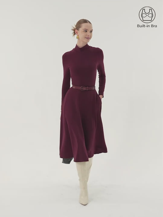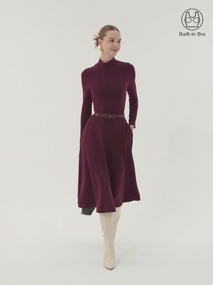 This essential mockneck dress features soft brushed interior and elegant circle hem that moves beautifully. The regular fit and inseam pockets make it easy to wear, and you can add a belt to define your waist and elevate the look.