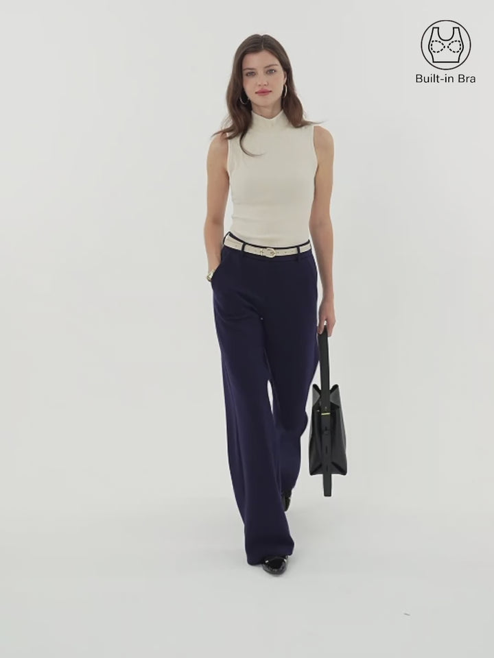 This slim-fit mockneck tank features textured rib and high-hip cut for a sleek, modern feel. It’s an elevated basic that delivers a chic, pulled-together look, completed with removable bra pads for comfort and ease.