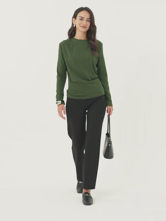 Your go-to pant, perfected. These pull-on straight leg pants combine everyday comfort with subtle shaping, thanks to a built-in panel that smooths tummy without pressure. Front slanted pockets made them practical. Plus, it has great stretch and is wrinkle-resistant.