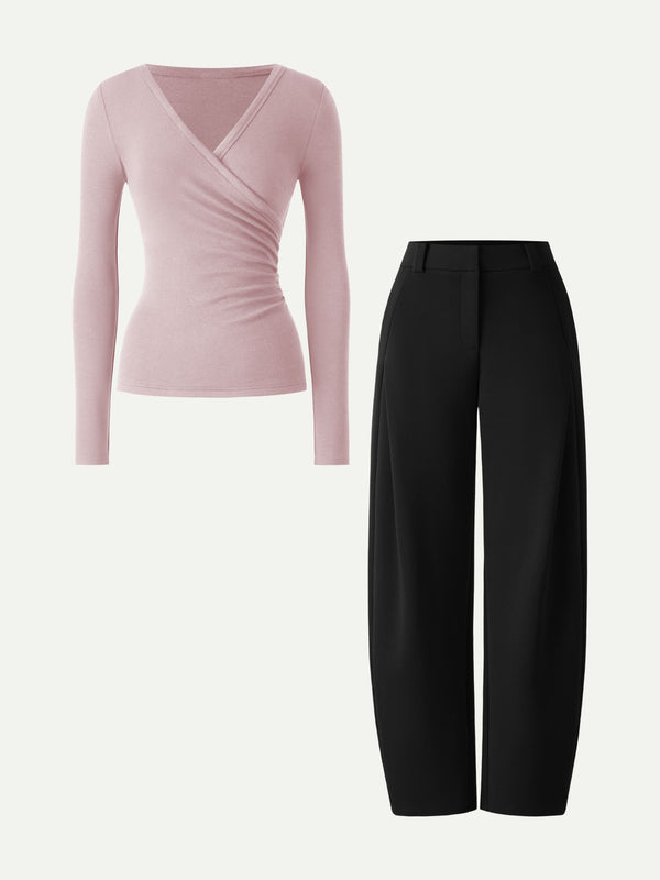 2-teiliges Set: Wickeloberteil mit Raffungen und hochgeschnittene Hose mit Taschen