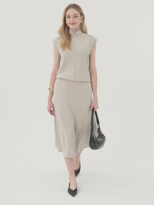 Dieser Doppelstrickstoff bietet flauschige Weichheit und eine samtig-matte Oberfläche. Dank 4-Wege-Stretch und atmungsaktiver Struktur passt er sich Ihren Bewegungen an und behält gleichzeitig einen klaren, modernen Fall. Außerdem ist er knitterarm – für ein gepflegtes Aussehen ohne viel Aufwand.