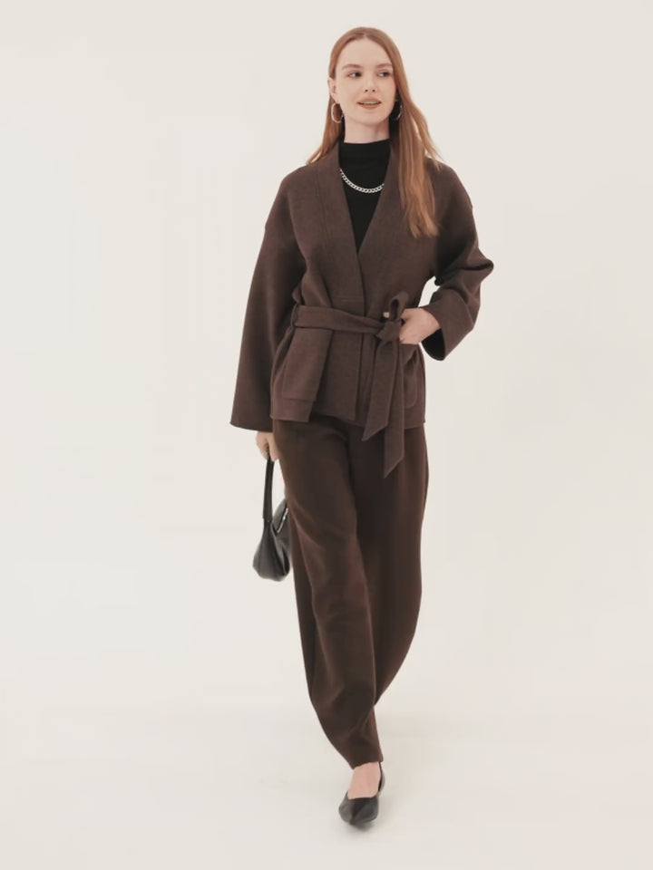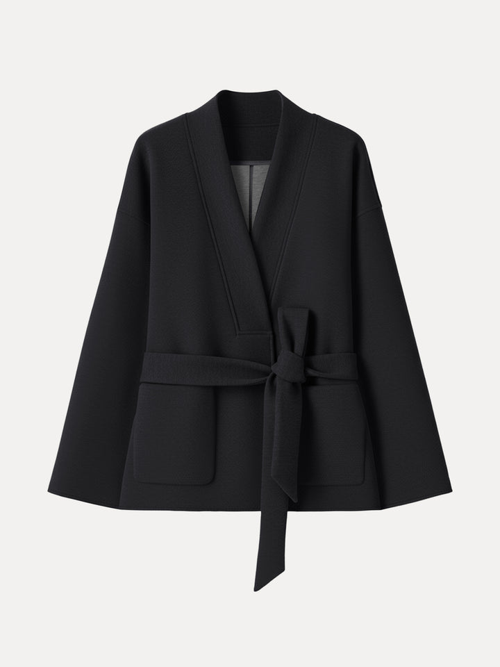 Dieser Wintermantel im Robenstil mit lässigem V-Ausschnitt und passendem Stoffgürtel sorgt für einen mühelos eleganten Look. Praktische aufgesetzte Taschen runden das Design ab. Er ist kuschelig, zeitlos und perfekt zum Kombinieren in der kalten Jahreszeit.