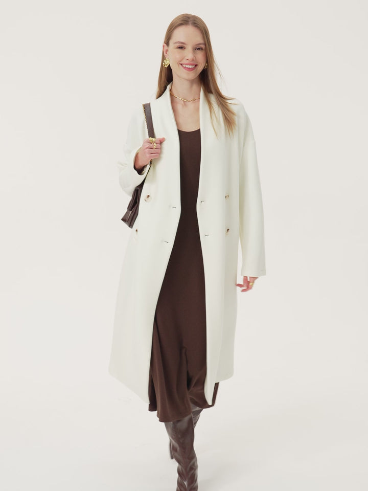 Dieser Wintermantel mit elegantem Stehkragen und klassischem zweireihigem Design wird Sie begeistern und Ihnen zeitlose Eleganz verleihen. Er reicht bis zur Wade, hat schräge Taschen und hält Sie die ganze Saison über warm und gepflegt.