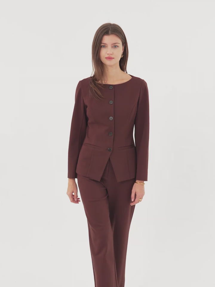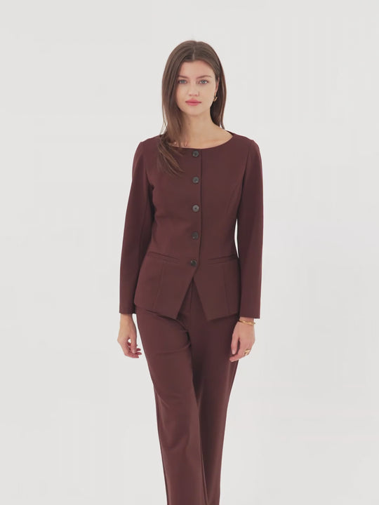 Sie werden begeistert sein, wie dieser dehnbare Blazer mit U-Boot-Ausschnitt einem Klassiker eine raffinierte Note verleiht. Mit einer schlichten Knopfleiste und Leistentaschen ist er für Komfort und Struktur vollständig gefüttert und somit ein elegantes Kleidungsstück, das Sie vom Büro bis zum Abendessen tragen können.