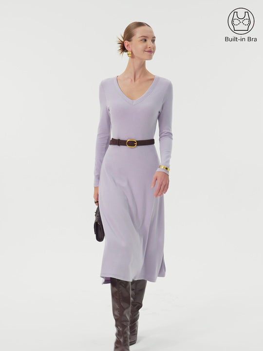 Sie werden dieses Basic-Kleid mit seinem klaren V-Ausschnitt und der runden, ausgestellten Silhouette lieben, die sich wunderbar bewegt. Die normale Passform sorgt für einen mühelosen Schnitt, während herausnehmbare BH-Polster für einfachen Halt und Komfort im Alltag sorgen.