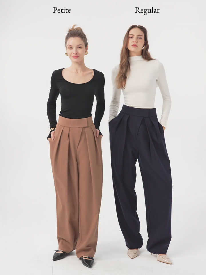 Diese High-Rise-Hose schmeichelt mit einem schmalen Beinausschnitt, der Ihre Beine optisch verlängert. Der breite Bund und das eingesteckte Design verleihen ihr Eleganz, während der schräge Hosenschlitz und die Taschen sie praktisch und modern machen.