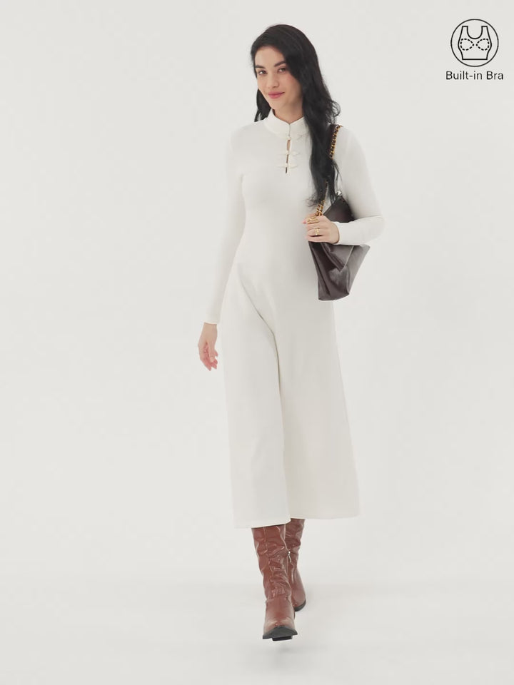 Dieses Kleid mit Stehkragen und Knopfleiste wird Sie begeistern und verleiht Ihrem Look eine elegante, festliche Note. Es reicht bis zur Wade und ist mit herausnehmbaren BH-Einlagen für optimalen Tragekomfort und Halt ausgestattet. Es ist perfekt für die Feiertage und gleichzeitig elegant genug für den Alltag.