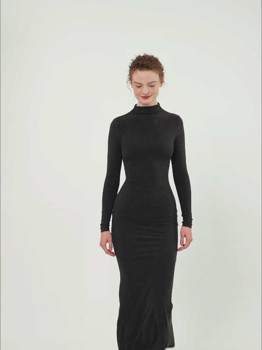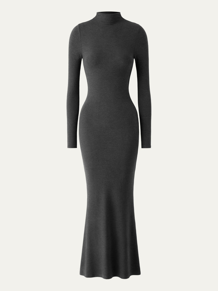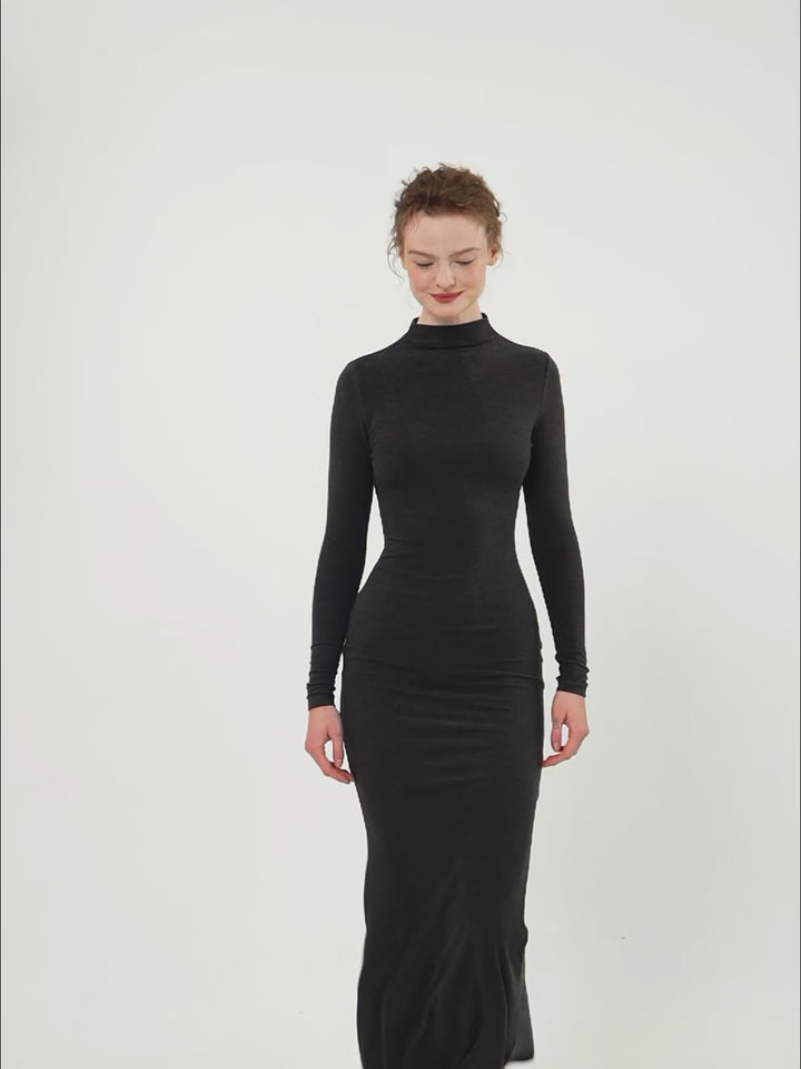 Ein Must-have für Events und formelle Anlässe. Dieses zeitlose Maxikleid besticht durch seinen Rollkragen und den eleganten Fischschwanzrock. Der weiche Stretchstoff sorgt für einen eleganten Look und gleichzeitig für Bewegungsfreiheit und Komfort. Kombinieren Sie es mit flachen Schuhen oder High Heels für ultimative Vielseitigkeit.