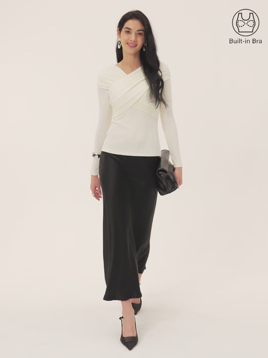 Dieses Top mit gerafftem V-Ausschnitt, der Ihre Schulter wunderschön betont, wird Sie begeistern. Dank der herausnehmbaren BH-Einlagen für optimalen Tragekomfort und Halt ist es das perfekte Highlight für Partys oder einen eleganten Ausgeh-Look.