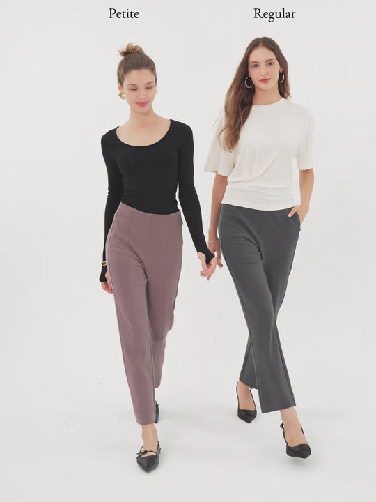 Sie werden begeistert sein, wie einfach diese Hose das tägliche Anziehen macht. Der verkürzte Schlupfstil mit elastischem Bund sorgt für hohen Tragekomfort, während Reißverschlusstaschen sicheren Stauraum bieten, ohne den cleanen Look zu beeinträchtigen.