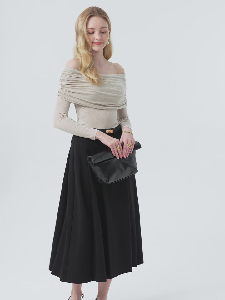 Sie werden diesen A-Linien-Midirock mit seinen klaren Biesendetails für einen eleganten Look lieben. Der elastische Überziehbund und die Innentaschen mit Reißverschluss machen ihn zu einer praktischen, funktionalen Wahl für maßgeschneiderte Looks und mehr.